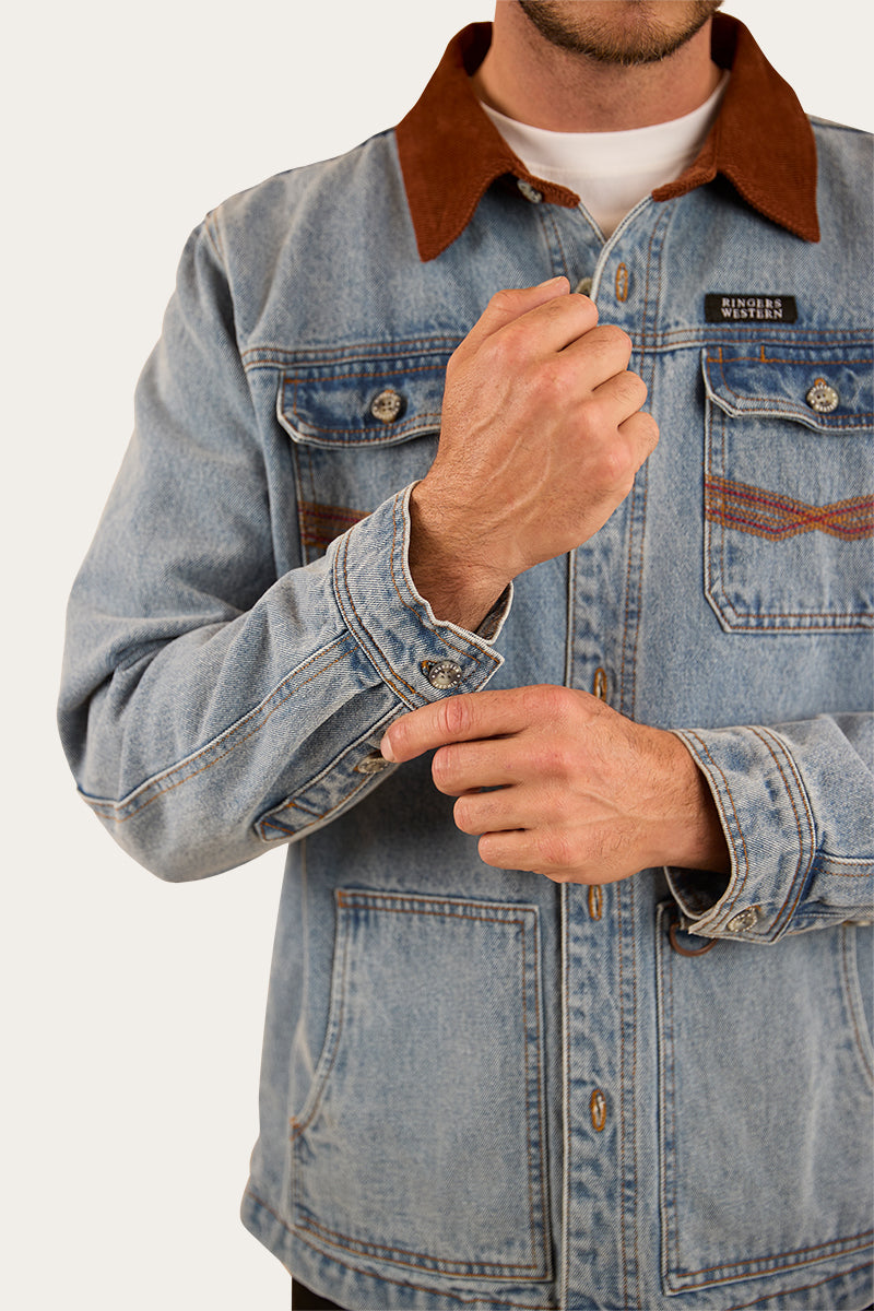 A contrasting cord collar and feature embroidery ensure this stylish western overshirt will stand out from the crowd. Additions such as dual chest pockets and a handy D-ring further enhance the functionality of this versatile staple.