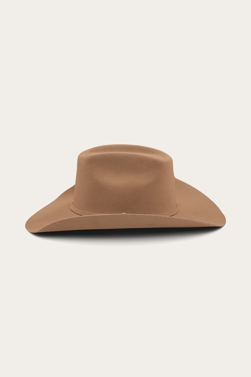 The Colevale is a traditional square-top western hat with a 4 1/2" crown, giving it a bold and iconic look. Made from dense, high-quality wool felt, this western hat offers durability, warmth, and the ability to hold its shape over time. Complete with a self-felt band around the crown, an internal leather sweatband for comfort, and an internal leather logo crown patch, the Colevale is a refined choice for fans of western hats for men. Presented in a Ringers Western hat box, it’s ideal for anyone looking to add a classic touch to their wardrobe.