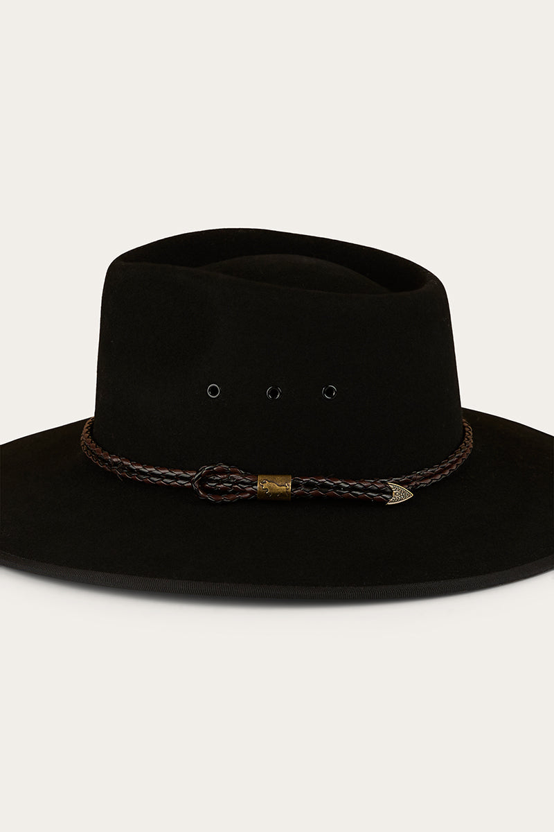 The Minamurra features a Cassidy style crown, complemented with a braided faux leather band, adding elegance and country charm to any outfit. The internal crown is lined with luxurious silk, while the genuine leather sweatband ensures a comfortable and secure fit, ideal for all-day wear amongst the elements. Finished with an antique brass logo, the Minamurra hat strikes the perfect balance between functionality and timeless style, making it a must-have for anyone looking to embrace authentic Australian western hats.