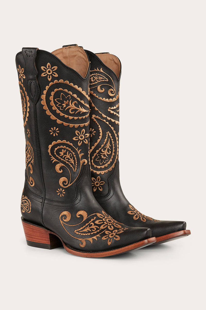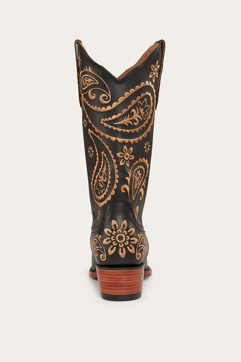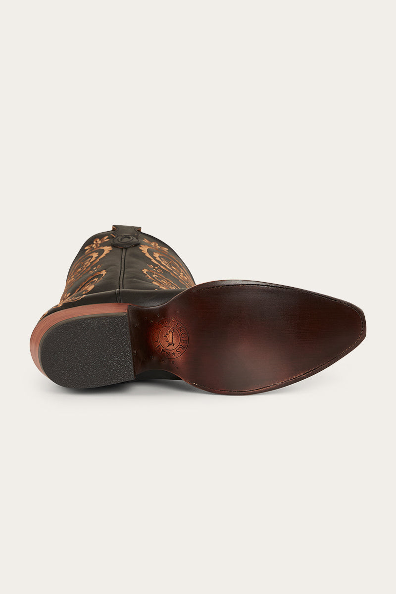 Olivia Womens Cuban Heel Western Boot - Black/Stone