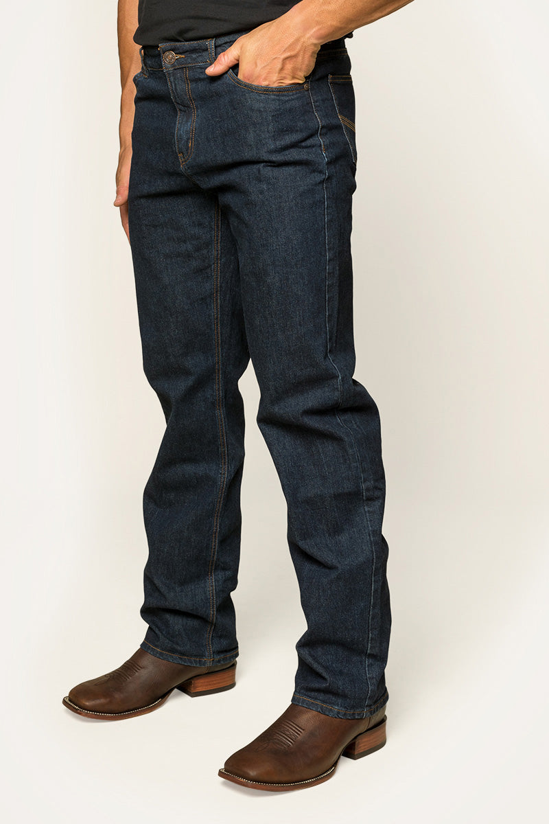 When it comes to traditional 'cowboy-style' blue denim jeans, the Ringers Western Sturt is all that and more. Made with ultra-high-quality stretch denim and with a relaxed fit through the hip, seat, and thigh, the Sturt Men's Leg Jeans are a 'must-have' for every cowboy's wardrobe.