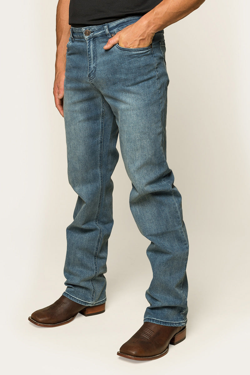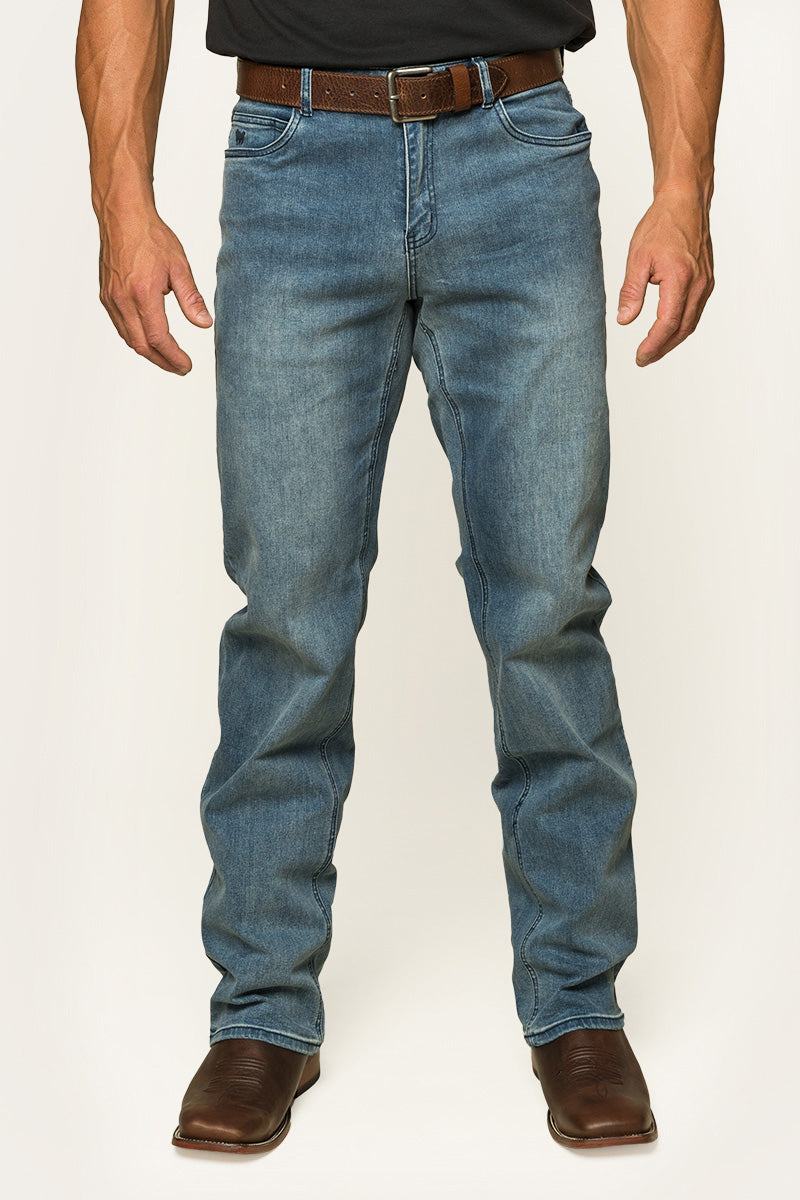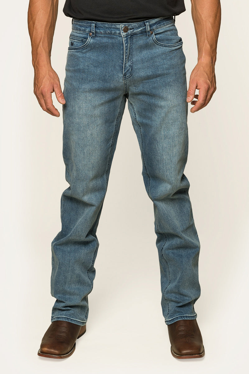When it comes to traditional 'cowboy-style' blue denim jeans, the Ringers Western Sturt is all that and more. Made with ultra-high-quality stretch denim and with a relaxed fit through the hip, seat, and thigh, the Sturt Men's Leg Jeans are a 'must-have' for every cowboy's wardrobe.